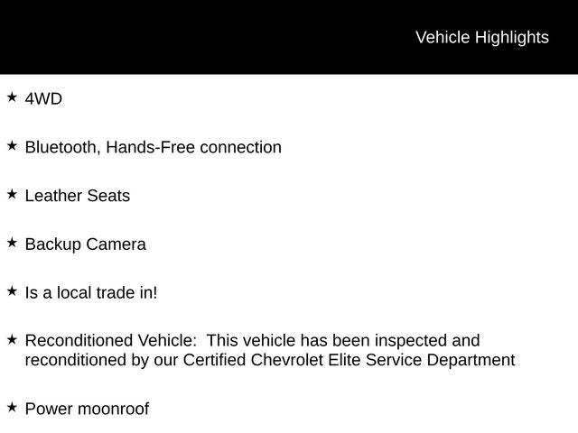 - Reconditioned Vehicle: Inspected and reconditioned by our Certified Chevrolet Elite Service Department
