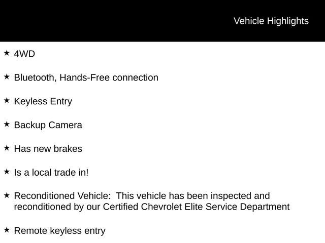 - Reconditioned Vehicle: This vehicle has been inspected and reconditioned by our Certified Chevrolet Elite Service Department