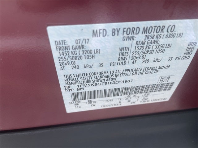 **We Deliver from our floor to your door! It's that easy! If you live within one hundred miles of our dealership, we will also deliver your car. See Dealer for delivery details. Buy Online-Get Trade Value Online-Email-Chat-Phone-Text and we will Deliver your Pre-owned vehicle to your door.** BLIS Plus Inflatable Rear Safety Belts Package (Auto-Dimming Driver's Sideview Mirror, BLIS Blind Spot Information System, and Inflatable Rear Seatbelts), Equipment Group 401A (110V/400W AC Power Outlet, Ambient Lighting, Dual 2nd Row Smart Charging USB, Front 180 Degree Camera w/Split View & Washer, Memory Feature, Perforated Leather Heated/Cooled Bucket Seats, Power Folding Sideview Mirrors w/Autofold, Power Tilt/Telescoping Steering Wheel, Power-Adjustable Pedals, Radio: Premium Sound from Sony, Remote Control Front Windows, Universal Garage Door Opener, and SYNC 3 Communications & Entertainment System), 12 Speakers, 20 Machined Aluminum w/Painted Pockets Wheels, 2nd Row Bucket Seats w/Power Assist Fold, 3.16 Axle Ratio, 3rd row seats: split-bench, 4-Wheel Disc Brakes, ABS brakes, Air Conditioning, Alloy wheels, AM/FM radio: SiriusXM, Auto-dimming Rear-View mirror, Automatic temperature control, Brake assist, Bumpers: body-color, CD player, Compass, Delay-off headlights, Driver door bin, Driver vanity mirror, Dual front impact airbags, Dual front side impact airbags, Electronic Stability Control, Emergency communication system: SYNC 3 911 Assist, Exterior Parking Camera Rear, Four wheel independent suspension, Front & Rear Floor Liners, Front anti-roll bar, Front Bucket Seats, Front Center Armrest, Front dual zone A/C, Front fog lights, Front reading lights, Fully automatic headlights, Heated door mirrors, Heated front seats, Heated steering wheel, Illuminated entry, Knee airbag, Leather steering wheel, Low tire pressure warning, Navigation System, Occupant sensing airbag, Outside temperature display, Overhead airbag, Overhead console, Panic alarm, Passenger door bin, Passenger vanity mirror, Perforated Leather Heated Bucket Seats, Power door mirrors, Power driver seat, Power Liftgate, Power passenger seat, Power steering, Power windows, Premium audio system: Sony, Radio data system, Radio: Sony Audio System w/Single-CD/MP3-Capable, Rear air conditioning, Rear anti-roll bar, Rear reading lights, Rear seat center armrest, Rear window defroster, Rear window wiper, Remote keyless entry, Roof rack: rails only, Security system, Speed control, Speed-sensing steering, Speed-Sensitive Wipers, Split folding rear seat, Spoiler, Steering wheel mounted audio controls, Tachometer, Telescoping steering wheel, Tilt steering wheel, Traction control, Trip computer, Turn signal indicator mirrors, Twin Panel Moonroof, and Variably intermittent wipers.