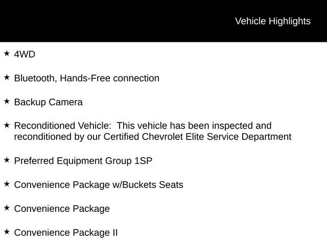 • Reconditioned Vehicle: Inspected and reconditioned by our Certified Chevrolet Elite Service Department
