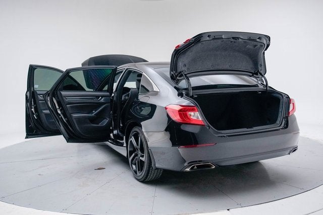 **LOCAL TRADE**, **Bluetooth®**, **REARVIEW CAMERA**.2019 Honda Accord Sport Crystal Black Pearl FWD CVT 4D Sedan 1.5T I4 DOHC 16V Turbocharged VTECOdometer is 6614 miles below market average!LARGEST VOLUME DEALER IN THE WABASH VALLEY!! HOME OF THE LIFETIME POWERTRAIN WARRANTY!!Price does not include applicable Tax, Title, Destination Fee, License, Processing and $249 Dealer Documentation fee, finance charges, emissions testing charges, or other fees required by law. 4-Wheel Disc Brakes, 8 Speakers, ABS brakes, Air Conditioning, Alloy wheels, AM/FM radio, Apple CarPlay/Android Auto, Auto High-beam Headlights, Automatic temperature control, Brake assist, Bumpers: body-color, Cloth Seat Trim, Delay-off headlights, Driver door bin, Driver vanity mirror, Dual front impact airbags, Dual front side impact airbags, Electronic Stability Control, Emergency communication system: HondaLink, Exterior Parking Camera Rear, Forward collision: Collision Mitigation Braking System (CMBS) + FCW mitigation, Four wheel independent suspension, Front anti-roll bar, Front Bucket Seats, Front Center Armrest, Front dual zone A/C, Front fog lights, Front reading lights, Fully automatic headlights, Illuminated entry, Knee airbag, Leather Shift Knob, Leather steering wheel, Low tire pressure warning, Occupant sensing airbag, Outside temperature display, Overhead airbag, Overhead console, Panic alarm, Passenger door bin, Passenger vanity mirror, Power door mirrors, Power driver seat, Power steering, Power windows, Radio data system, Radio: 180-Watt AM/FM Audio System, Rear anti-roll bar, Rear seat center armrest, Rear window defroster, Remote keyless entry, Security system, Speed control, Speed-sensing steering, Speed-Sensitive Wipers, Split folding rear seat, Spoiler, Steering wheel mounted audio controls, Tachometer, Telescoping steering wheel, Tilt steering wheel, Traction control, Trip computer, Variably intermittent wipers, and Wheels: 19 Machine-Finished Alloy w/Black Inserts.
