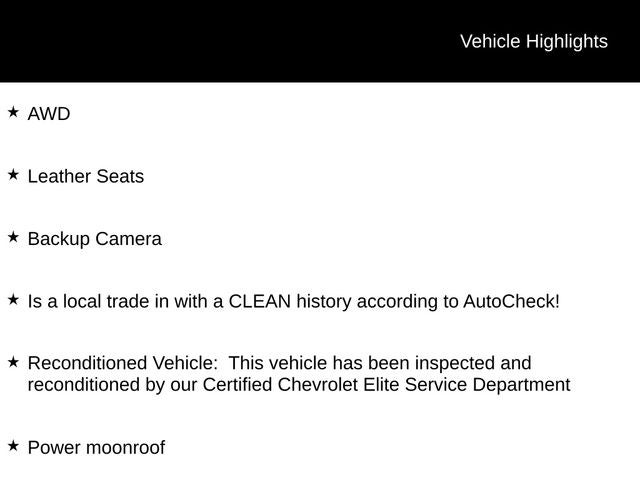 - Reconditioned Vehicle: This vehicle has been inspected and reconditioned by our Certified Chevrolet Elite Service Department