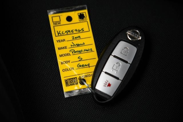 **Bluetooth®**, **REARVIEW CAMERA**, **4WD**.2019 Nissan Pathfinder S Gun Metallic 4WD CVT with Xtronic 4D Sport Utility V6Odometer is 22253 miles below market average!LARGEST VOLUME DEALER IN THE WABASH VALLEY!! HOME OF THE LIFETIME POWERTRAIN WARRANTY!!Price does not include applicable Tax, Title, Destination Fee, License, Processing and $249 Dealer Documentation fee, finance charges, emissions testing charges, or other fees required by law. 3rd row seats: bench, 4-Wheel Disc Brakes, 5.25 Axle Ratio, 6 Speakers, 6-Speaker Audio System, ABS brakes, Air Conditioning, Alloy wheels, AM/FM radio: SiriusXM, Automatic temperature control, Brake assist, Bumpers: body-color, Carpeted Floor Mats (4-pc Set), CD player, Cloth Seating Surfaces, Delay-off headlights, Driver door bin, Driver vanity mirror, Dual front impact airbags, Dual front side impact airbags, Electronic Stability Control, Four wheel independent suspension, Front anti-roll bar, Front Bucket Seats, Front Center Armrest, Front dual zone A/C, Front reading lights, Illuminated entry, Low tire pressure warning, Occupant sensing airbag, Outside temperature display, Overhead airbag, Overhead console, Panic alarm, Passenger door bin, Passenger vanity mirror, Power door mirrors, Power steering, Power windows, Radio data system, Radio: AM/FM/CD Audio System w/NissanConnect, Rear air conditioning, Rear anti-roll bar, Rear Parking Sensors, Rear reading lights, Rear seat center armrest, Rear window defroster, Rear window wiper, Reclining 3rd row seat, Remote keyless entry, Roof rack: rails only, Security system, Speed control, Speed-sensing steering, Split folding rear seat, Spoiler, Steering wheel mounted audio controls, Tachometer, Telescoping steering wheel, Tilt steering wheel, Traction control, Trip computer, Turn signal indicator mirrors, Variably intermittent wipers, and Wheels: 18 x 7.5 J Machined Aluminum-Alloy.