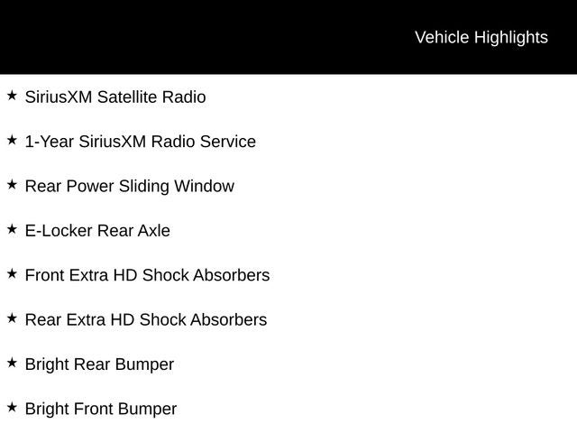 • Off-Road Group with skid plates, extra-duty shocks, and e-locker rear axle