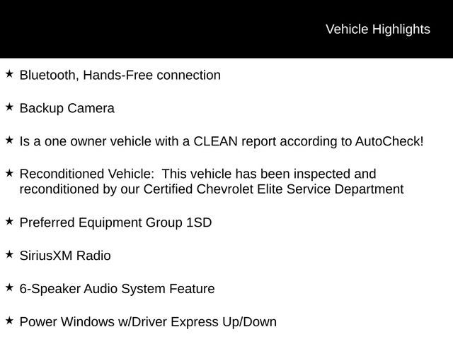 - Reconditioned Vehicle: This vehicle has been inspected and reconditioned by our Certified Chevrolet Elite Service Department