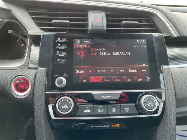 **We Deliver from our floor to your door! It's that easy! If you live within one hundred miles of our dealership, we will also deliver your car. See Dealer for delivery details. Buy Online-Get Trade Value Online-Email-Chat-Phone-Text and we will Deliver your Pre-owned vehicle to your door.** 4-Wheel Disc Brakes, 8 Speakers, ABS brakes, Adaptive Cruise Control: Adaptive Cruise Control (ACC) with Low-Speed Follow, Air Conditioning, Alloy wheels, AM/FM radio, Apple CarPlay/Android Auto, Auto High-beam Headlights, Automatic temperature control, Brake assist, Bumpers: body-color, Cloth Seat Trim, Delay-off headlights, Driver door bin, Driver vanity mirror, Dual front impact airbags, Dual front side impact airbags, Electronic Stability Control, Emergency communication system: HondaLink, Exterior Parking Camera Rear, Forward collision: Collision Mitigation Braking System (CMBS) + FCW mitigation, Four wheel independent suspension, Front anti-roll bar, Front Bucket Seats, Front Center Armrest, Front fog lights, Front reading lights, Fully automatic headlights, Illuminated entry, Lane departure: Lane Keeping Assist System (LKAS) active, Leather Shift Knob, Low tire pressure warning, Occupant sensing airbag, Outside temperature display, Overhead airbag, Panic alarm, Passenger door bin, Passenger vanity mirror, Power door mirrors, Power steering, Power windows, Radio data system, Radio: 180-Watt AM/FM Audio System, Rear anti-roll bar, Rear window defroster, Remote keyless entry, Security system, Speed control, Speed-sensing steering, Split folding rear seat, Spoiler, Steering wheel mounted audio controls, Tachometer, Telescoping steering wheel, Tilt steering wheel, Traction control, Trip computer, and Wheels: 18 Alloy w/Gloss Black Inserts.