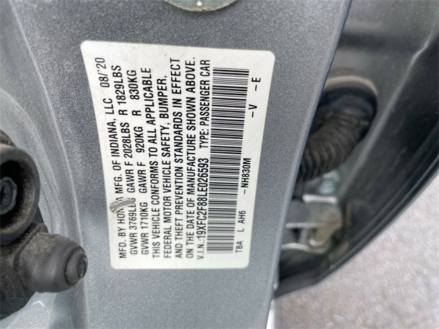 2020 Honda Civic Sport Silver 2.0L I4 DOHC 16V i-VTEC FWD CVT 4D Sedan