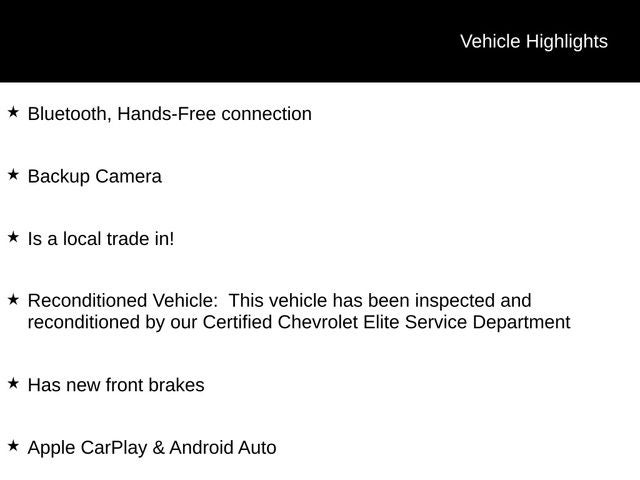 - Reconditioned Vehicle: This vehicle has been inspected and reconditioned by our Certified Chevrolet Elite Service Department