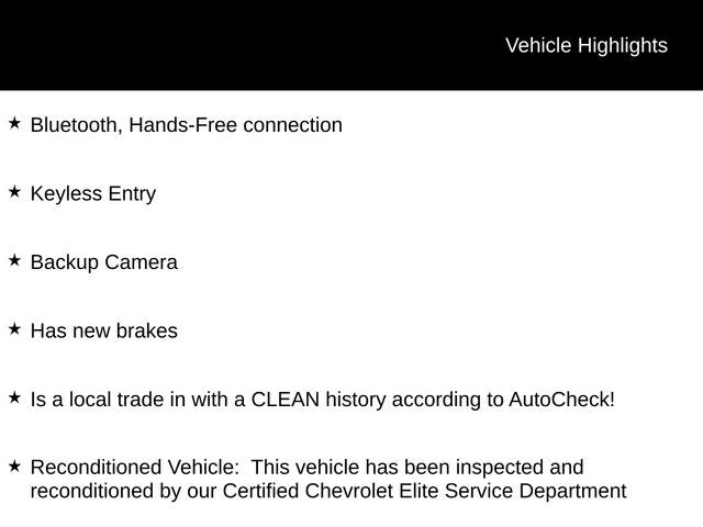 - Reconditioned Vehicle: This vehicle has been inspected and reconditioned by our Certified Chevrolet Elite Service Department