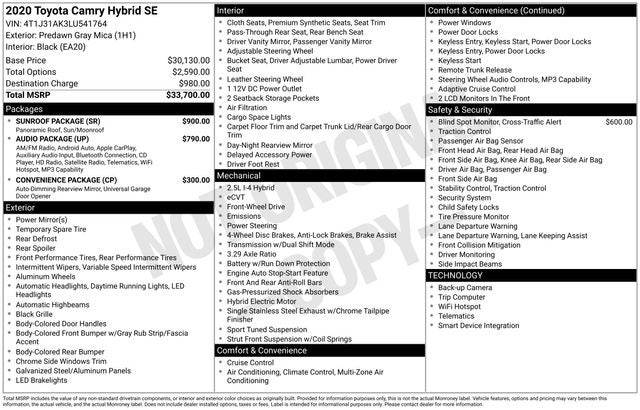 2020 Toyota Camry Hybrid SE