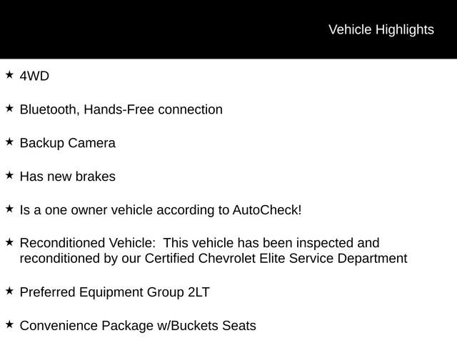 • Reconditioned by Certified Chevrolet Elite Service Department