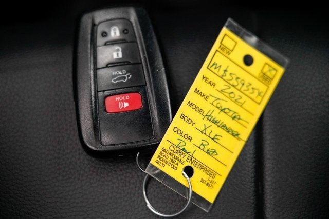 **ONE OWNER**, **LOCAL TRADE**, **Bluetooth®**, **REARVIEW CAMERA**, **HEATED SEATS**, **SUNROOF/MOONROOF**, **AWD**, **LEATHER SEATS**.2021 Toyota Highlander XLE Red AWD 8-Speed Automatic 4D Sport Utility 3.5L V6 DOHCOdometer is 25779 miles below market average!LARGEST VOLUME DEALER IN THE WABASH VALLEY!! HOME OF THE LIFETIME POWERTRAIN WARRANTY!!Price does not include applicable Tax, Title, Destination Fee, License, Processing and $249 Dealer Documentation fee, finance charges, emissions testing charges, or other fees required by law. 18 Machined Alloy Wheels, 3.003 Axle Ratio, 3rd row seats: split-bench, 4-Wheel Disc Brakes, 6 Speakers, ABS brakes, Air Conditioning, Alloy wheels, AM/FM radio: SiriusXM, Apple CarPlay/Android Auto, Auto High-beam Headlights, Auto-dimming Rear-View mirror, Automatic temperature control, Brake assist, Bumpers: body-color, Delay-off headlights, Driver door bin, Driver vanity mirror, Dual front impact airbags, Dual front side impact airbags, Electronic Stability Control, Emergency communication system: Safety Connect with 1-year trial, Exterior Parking Camera Rear, Four wheel independent suspension, Front anti-roll bar, Front Bucket Seats, Front Center Armrest, Front dual zone A/C, Front fog lights, Front reading lights, Fully automatic headlights, Garage door transmitter: HomeLink, Heated door mirrors, Heated Front Bucket Seats, Heated front seats, Illuminated entry, Knee airbag, Leather Shift Knob, Low tire pressure warning, Occupant sensing airbag, Outside temperature display, Overhead airbag, Overhead console, Panic alarm, Passenger door bin, Passenger vanity mirror, Power door mirrors, Power driver seat, Power Liftgate, Power moonroof, Power passenger seat, Power steering, Power windows, Radio: Audio Plus, Rear air conditioning, Rear anti-roll bar, Rear reading lights, Rear window defroster, Rear window wiper, Reclining 3rd row seat, Remote keyless entry, Roof rack: rails only, Security system, SofTex Seat Trim, Speed control, Speed-sensing steering, Split folding rear seat, Spoiler, Steering wheel mounted audio controls, Tachometer, Telescoping steering wheel, Tilt steering wheel, Traction control, Trip computer, Turn signal indicator mirrors, and Variably intermittent wipers.
