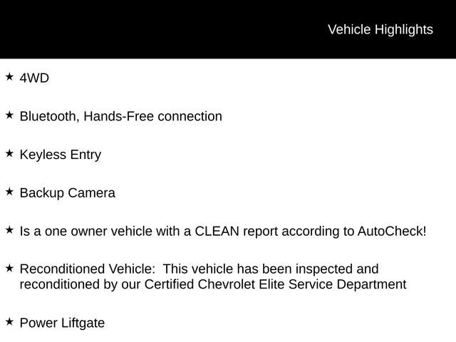 - Reconditioned Vehicle: This vehicle has been inspected and reconditioned by our Certified Chevrolet Elite Service Department