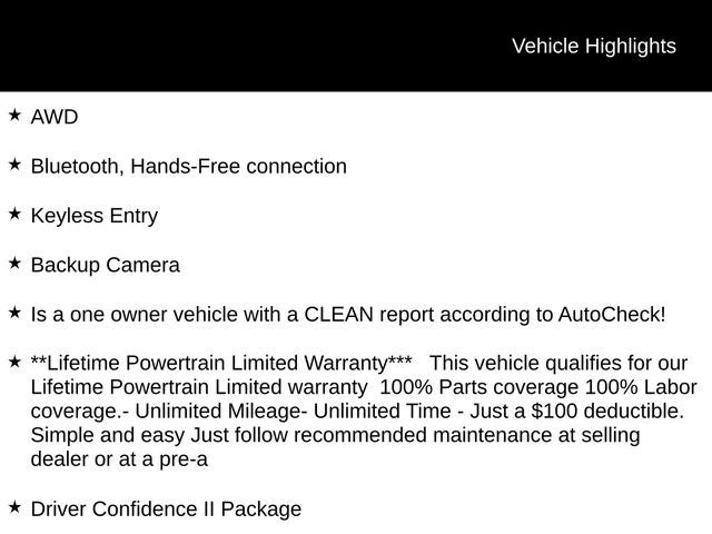 - **Lifetime Powertrain Limited Warranty*** This vehicle qualifies for our Lifetime Powertrain Limited warranty 100% Parts coverage 100% Labor coverage.- Unlimited Mileage- Unlimited Time - Just a $100 deductible. Simple and easy Just follow recommended maintenance at selling dealer or at a pre-a