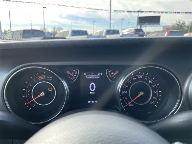 **We Deliver from our floor to your door! It's that easy! If you live within one hundred miles of our dealership, we will also deliver your car. See Dealer for delivery details. Buy Online-Get Trade Value Online-Email-Chat-Phone-Text and we will Deliver your Pre-owned vehicle to your door.** Cold Weather Group (Heated Front Seats and Heated Steering Wheel), Convenience Group (Universal Garage Door Opener), LED Headlamp & Fog Lamp Group (Front LED Fog Lamps and LED Premium Reflector Headlamps), Quick Order Package 22W Willys (4-Wheel Drive Swing Gate Decal, Anti-Spin Differential Rear Axle, Automatic Headlamps, Black Grille, Deep Tint Sunscreen Windows, Front 1-Touch Down Power Windows, Mold In Color Bumper w/Gloss Black, MOPAR All-Weather Floor Mats, Power Heated Mirrors, Premium Wrapped Steering Wheel, Remote Keyless Entry, Security Alarm, Speed Sensitive Power Locks, Sun Visors w/Illuminated Vanity Mirrors, Wheels: 17 x 7.5 Black Aluminum, Willys, and Willys Hood Decal), 3.45 Overall Top Gear Ratio, 4-Wheel Disc Brakes, 8 Speakers, ABS brakes, Air Conditioning, AM/FM radio, Apple CarPlay, Apple CarPlay/Android Auto, Aux Battery, Brake assist, Cloth Low-Back Bucket Seats, Compass, Delay-off headlights, Driver door bin, Driver vanity mirror, Dual front impact airbags, Dual front side impact airbags, Electronic Stability Control, Emergency communication system: SiriusXM Guardian, Engine Oil Cooler, Front anti-roll bar, Front Bucket Seats, Front Center Armrest w/Storage, Front fog lights, Front reading lights, Google Android Auto, GPS Antenna Input, Integrated Center Stack Radio, Integrated roll-over protection, Integrated Voice Command w/Bluetooth®, Low tire pressure warning, MOPAR Doors Off Mirror Kit, Non-Lock Fuel Cap w/o Discriminator, Normal Duty Suspension, Occupant sensing airbag, Outside temperature display, ParkView Rear Back-Up Camera, Passenger door bin, Passenger vanity mirror, Power steering, Radio data system, Radio: Uconnect 4 w/7 Display, Rear anti-roll bar, Rear reading lights, Speed control, Split folding rear seat, Steering wheel mounted audio controls, Stop-Start Dual Battery System, Tachometer, Telescoping steering wheel, Tilt steering wheel, Traction control, Trip computer, USB Host Flip, Variably intermittent wipers, Wheels: 17 x 7.5 Black Steel Styled, and Wheels: 17 x 7.5 Moab Black Aluminum (DISC)