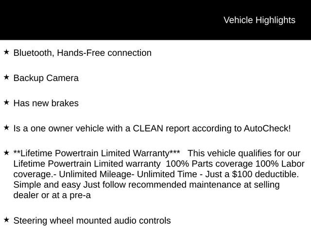 - **Lifetime Powertrain Limited Warranty*** This vehicle qualifies for our Lifetime Powertrain Limited warranty 100% Parts coverage 100% Labor coverage.- Unlimited Mileage- Unlimited Time - Just a $100 deductible. Simple and easy Just follow recommended maintenance at selling dealer or at a pre-a