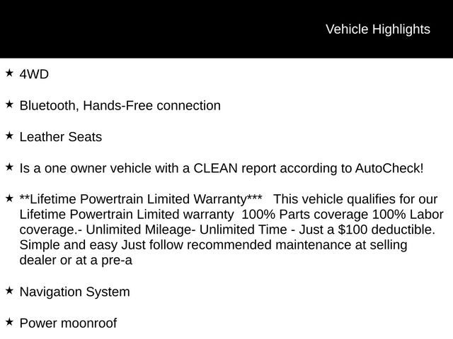 - **Lifetime Powertrain Limited Warranty*** This vehicle qualifies for our Lifetime Powertrain Limited warranty 100% Parts coverage 100% Labor coverage.- Unlimited Mileage- Unlimited Time - Just a $100 deductible. Simple and easy Just follow recommended maintenance at selling dealer or at a pre-a