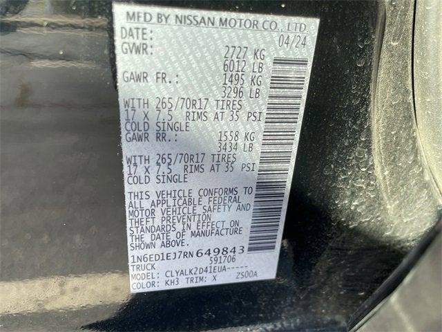 2024 Nissan Frontier PRO-X Super Black 3.8L DI DOHC 24V V6 RWD 9-Speed Automatic with Overdrive 4D Crew Cab