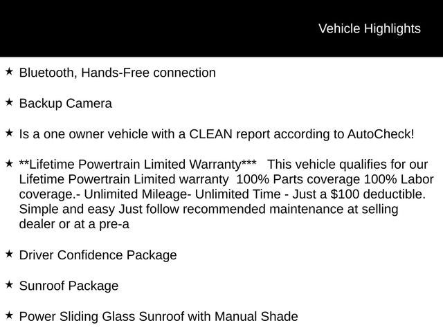 - **Lifetime Powertrain Limited Warranty*** This vehicle qualifies for our Lifetime Powertrain Limited warranty 100% Parts coverage 100% Labor coverage.- Unlimited Mileage- Unlimited Time - Just a $100 deductible. Simple and easy Just follow recommended maintenance at selling dealer or at a pre-a