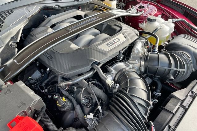 Beneath the sleek and striking Molten Magenta Metallic Tri-coat exterior lies a heart-pounding 5.0L V8 DOHC 32V engine, mated to a lightning-fast 10-speed automatic transmission. With 15 city/23 highway MPG, this Mustang Dark Horse delivers exhilarating performance without sacrificing efficiency.