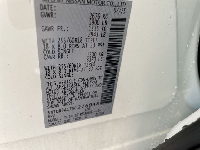 **We Deliver from our floor to your door! It's that easy! If you live within one hundred miles of our dealership, we will also deliver your car. See Dealer for delivery details. Buy Online-Get Trade Value Online-Email-Chat-Phone-Text and we will Deliver your Pre-owned vehicle to your door.** 3rd row seats: bench, 4-Wheel Disc Brakes, 6 Speakers, ABS brakes, Air Conditioning, Alloy wheels, AM/FM radio: SiriusXM, Auto High-beam Headlights, Automatic temperature control, Bench Seat Carpeted Floor Mats (set of 4), Black Splash Guards (set of 4), Blind Spot Warning, Brake assist, Bumpers: body-color, Cloth Seating Surfaces, Delay-off headlights, Driver door bin, Driver vanity mirror, Dual front impact airbags, Dual front side impact airbags, Electronic Stability Control, Four wheel independent suspension, Front anti-roll bar, Front Bucket Seats, Front Center Armrest, Front dual zone A/C, Front reading lights, Fully automatic headlights, Illuminated entry, Knee airbag, Low tire pressure warning, NissanConnect featuring Apple CarPlay and Android Auto, Occupant sensing airbag, Outside temperature display, Overhead airbag, Overhead console, Panic alarm, Passenger door bin, Passenger vanity mirror, Power door mirrors, Power steering, Power windows, Radio data system, Radio: AM/FM Audio System with NissanConnect, Rear air conditioning, Rear anti-roll bar, Rear Parking Sensors, Rear reading lights, Rear side impact airbag, Rear window defroster, Rear window wiper, Reclining 3rd row seat, Remote keyless entry, Security system, Speed control, Speed-sensing steering, Split folding rear seat, Spoiler, Steering wheel mounted audio controls, Tachometer, Telescoping steering wheel, Tilt steering wheel, Traction control, Trip computer, Variably intermittent wipers, and Wheels: 18 x 8J Painted Alloy.