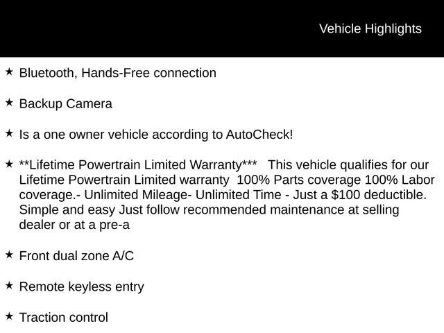 - **Lifetime Powertrain Limited Warranty*** This vehicle qualifies for our Lifetime Powertrain Limited warranty 100% Parts coverage 100% Labor coverage.- Unlimited Mileage- Unlimited Time - Just a $100 deductible. Simple and easy Just follow recommended maintenance at selling dealer or at a pre-a