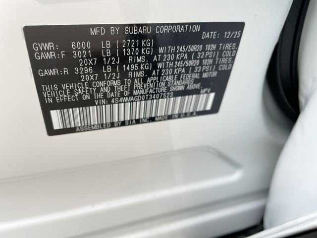 2026 Subaru Ascent Limited Crystal White Pearl 2.4L 4-Cylinder DOHC 16V AWD Lineartronic CVT 4D Sport Utility